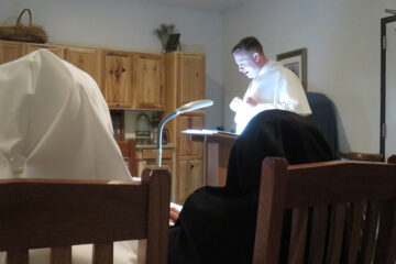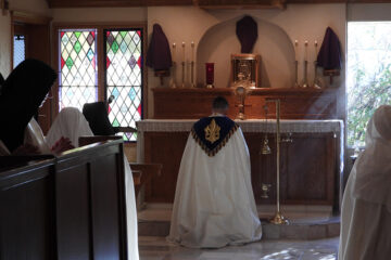 At present, their chapel is part of a set of temporary buildings in their enclosure – the sisters are in the process of raising funds to build a magnificent Priory Church and extend their cloister. They have a small guest-house and priest’s house outside of the cloister, set in the beautiful valley, so reminiscent of the valley of Prémontré where Our Holy Father Norbert first founded our Order, almost 900 years ago. He would be proud to see the wonderful spreading of the Order in the Americas, where we have houses in 5 states (California, Wisconsin, Philadelphia, New Mexico, and Illinois) as well as in Canada and Brazil. The founding Pater Abbas of the Canonry of Tehachapi is the Abbot of St Michael’s Abbey, Orange County CA, and our confreres from the Abbey supply a provost (chaplain) and priests to provide the Sacraments for our sisters.