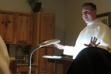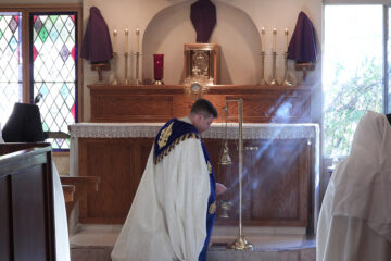 The following photographs show their Mass, Holy Hour, and conferences given by Fr Stephen as part of the retreat. His talks focussed on the “mystical adventure of the Mass” with reference to the writings of Our Holy Father Augustine as well as other authors, including Mgr Ronald Knox.