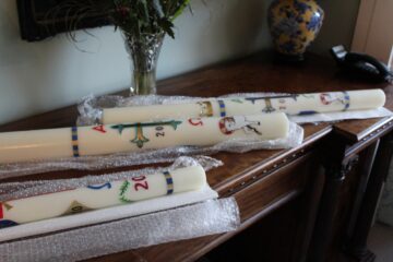 Fr Stephen has been painting the paschal candles during Lent, for use this Easter in our Churches and Priory chapel. Even during this “lockdown,” the churches must still have an Easter candle!