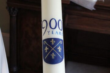 The reverse of each candle references the jubilee which begins later this year: 900 years of the Norbertine Order! The arms of the Order (in simple form) are on each of the parish candles, and the Priory one also includes the arms of the Priory and of Abbot Hugh. 1120 to 2020 represents for us Norbertines 900 years of dedicated service of God and his Church, and so many saintly brothers and sisters of St Norbert throughout the ages! It is a reminder too, that the white habit is symbolic not only of Our Blessed Lady’s Immaculate Conception, but also of the shining white garments worn by the angels at the Lord’s tomb, on the morning of His resurrection. Norbertines are called to be witnesses to the joyful resurrection of Christ.